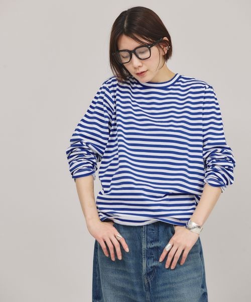 ブルーのボーダーロンTと女性らしいカーヴィーデニムを合わせた大人カジュアルスタイルに、秋にぴったりのこっくりとしたブラウンのロングコートを羽織って大人な雰囲気に着こなしました。袖口からちらりと覗くボーダーがアクセントになっています。コートは日本が誇るウール産地、尾州で高密度ギャバに中綿ボンディング加工を施した逸品です。トレンチコート感覚で羽織れて、トレンド感と暖かさを両立できるPREMIUM OUTER AWARDの投票でも1位になった人気のアイテムです。