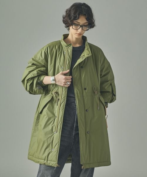 モッズコートのような感覚でカジュアルに纏えるカーキはデイリー使いにぴったり。ビッグシルエットなので中に厚手なニットを着込んでも◎撥水性のある光沢生地を使用しているので、カジュアルなデニム合わせでもメリハリのあるワンランク上の着こなしが楽しめます。“M-48”の仕様を取り入れた特別な一着になっています。
