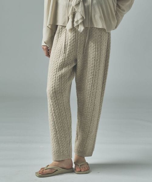 温かみのあるケーブルニットはセットアップでご用意しています。