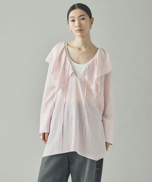 <C.S.G>ストライプラッフルブラウス
