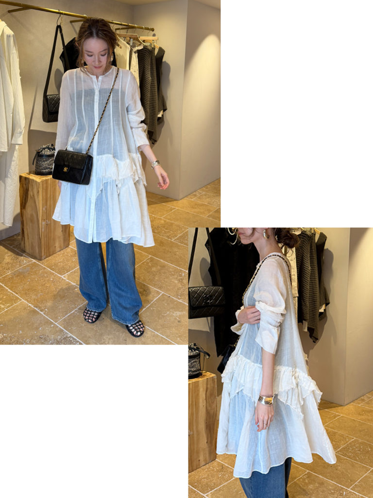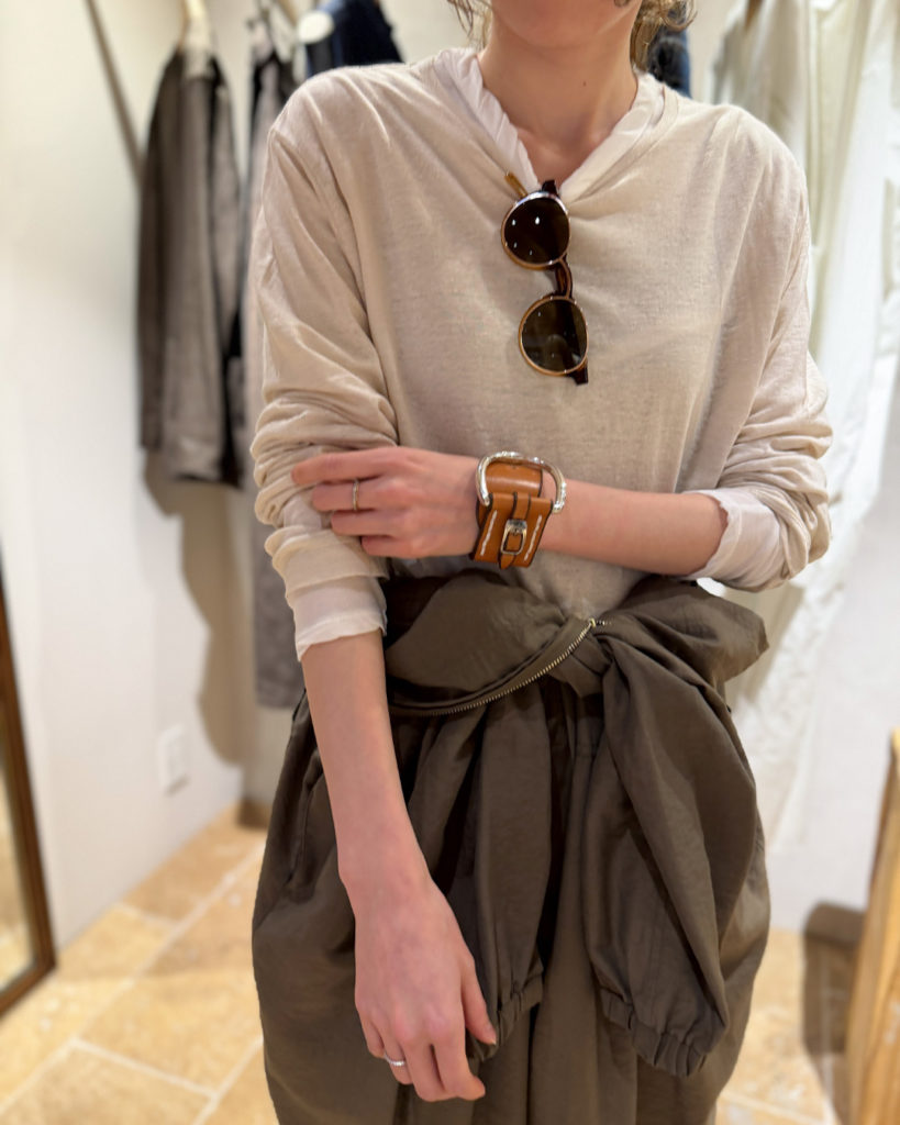 リラックスカジュリネンならではの透け感と、ゆるっとしたサイズ感に惹かれたシアートップス。