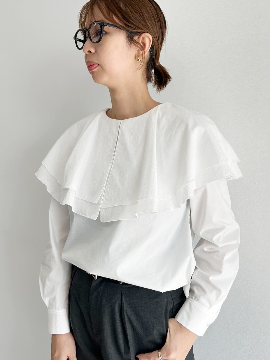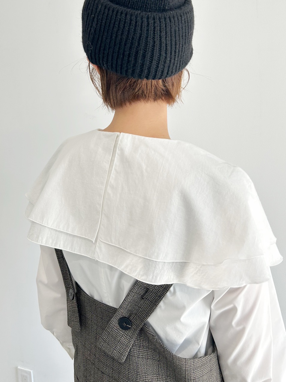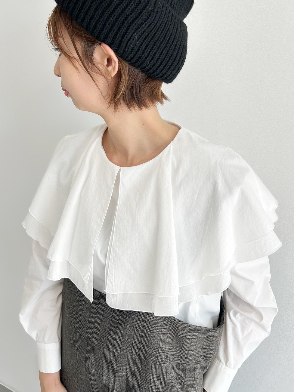 เสื้อคอปกใหญ่ตัวนี้ช่วยสร้างลุคที่ดูหรูหราและเป็นผู้ใหญ่ ผ้าคลุมไหล่ฟูๆ สามมิติช่วยเสริมให้ใบหน้าดูสวยงามยิ่งขึ้น