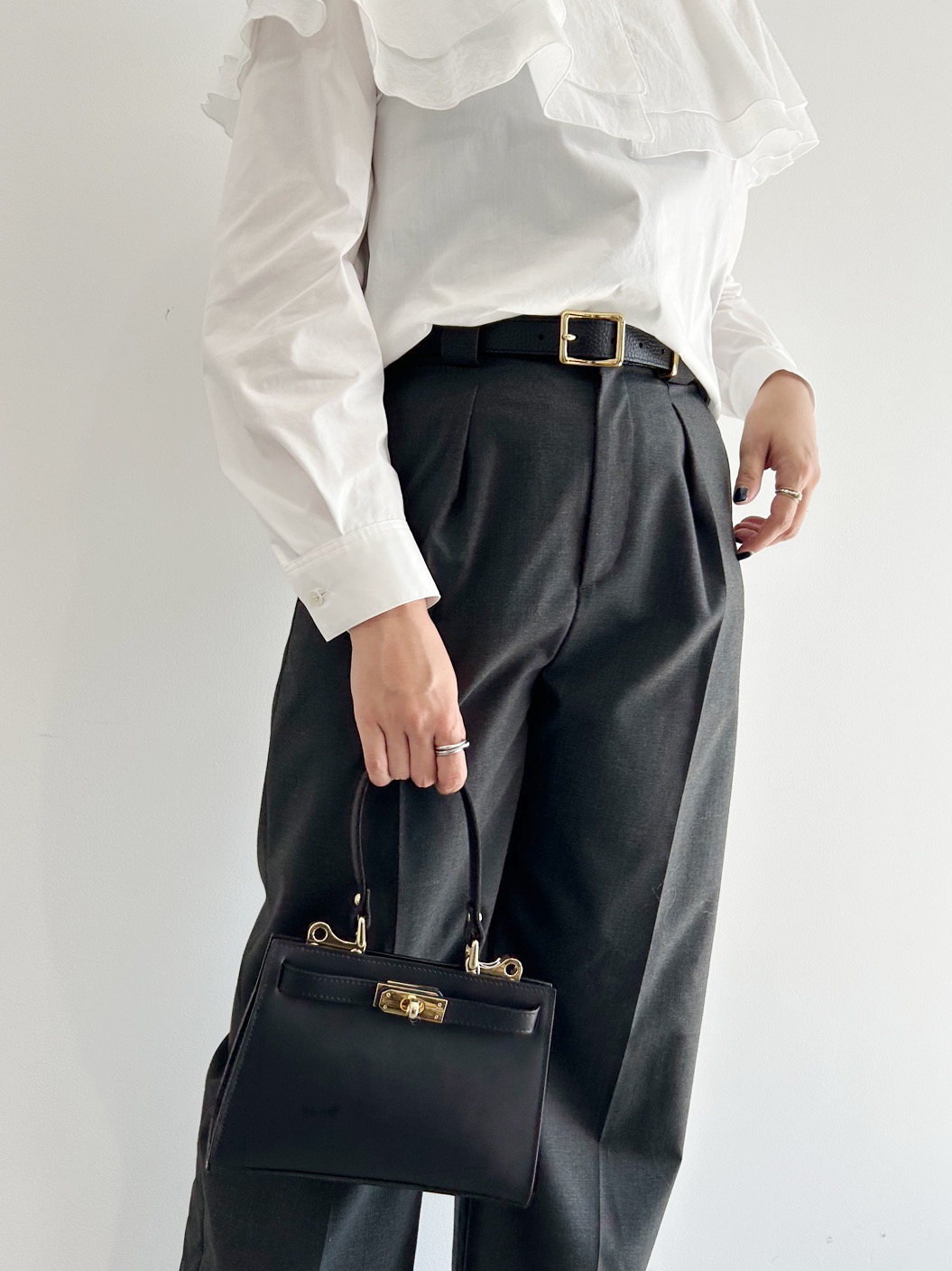 จับคู่เสื้อเบลาส์คอปกใหญ่ทรงผู้หญิงกับกางเกงขายาวทรงเรียบๆ เพื่อลุคที่เหมาะสำหรับไปทำงานหรือไปงานโรงเรียน เลือกใช้เครื่องประดับสีดำเพื่อเพิ่มความหรูหราอีกระดับ