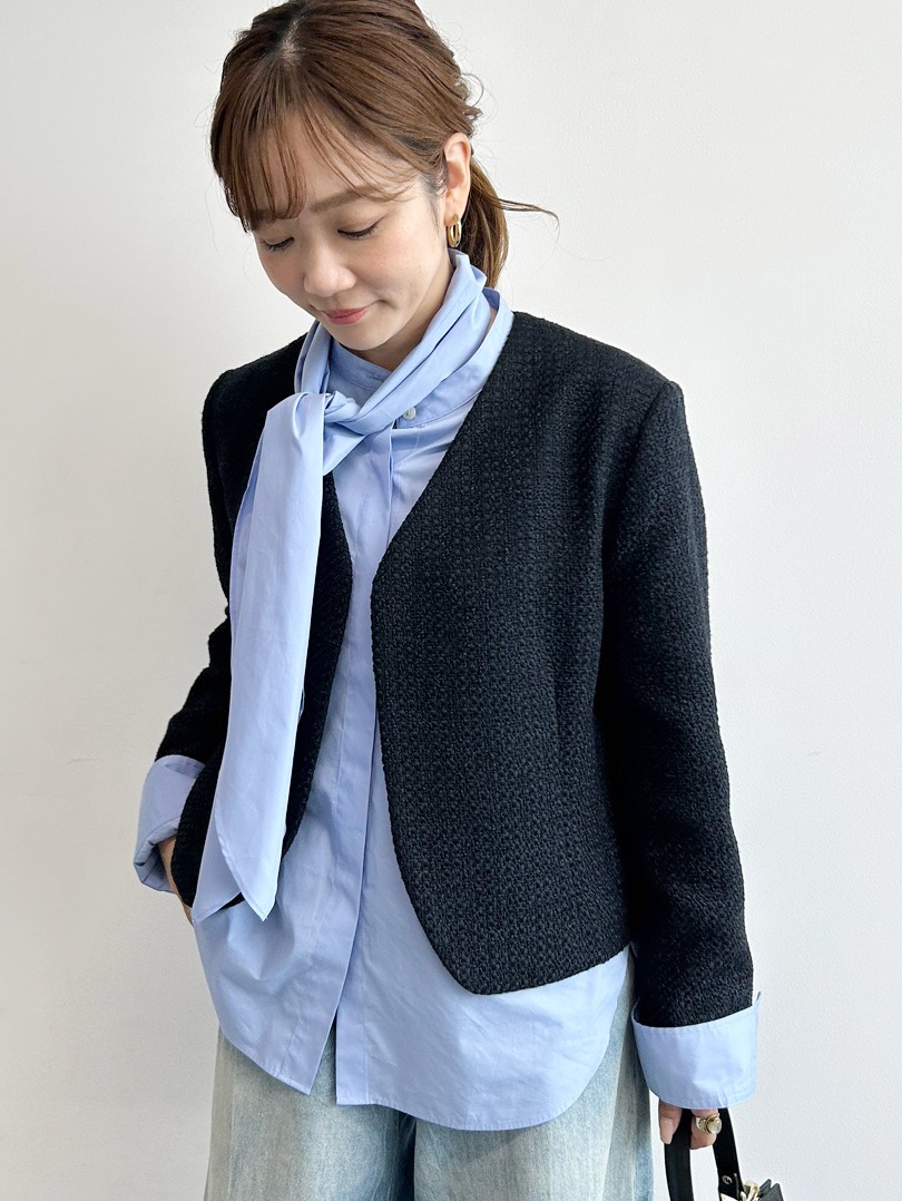 เสื้อแจ็คเก็ตผ้าทวีดตัวนี้สามารถนำมาแมทช์กับเสื้อผ้าลำลองได้อย่างง่ายดาย ลองจับคู่กับเสื้อเชิ้ตและกางเกงยีนส์เพื่อลุคสีน้ำเงินโทนเดียวดูสิ