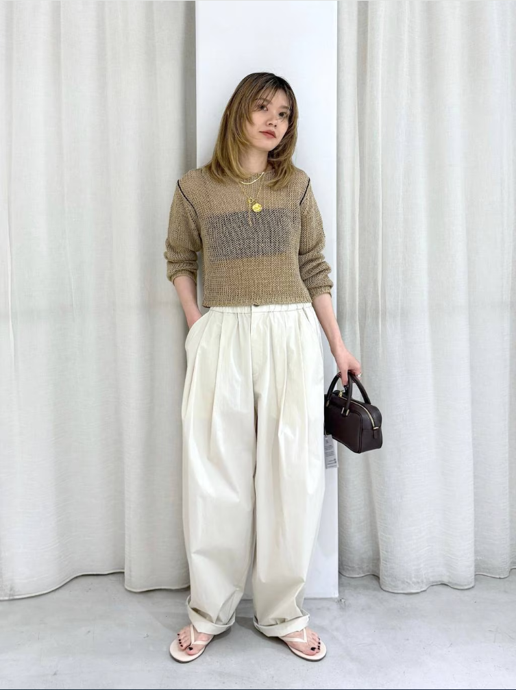 กางเกงขายาวทรงพองที่ได้รับความนิยมของ BABYLONE ได้รับการปรับทรงใหม่แล้ว! ความกลมมนบริเวณสะโพกถูกลดทอนลง ทำให้ดูเพรียวบางขึ้นเล็กน้อย