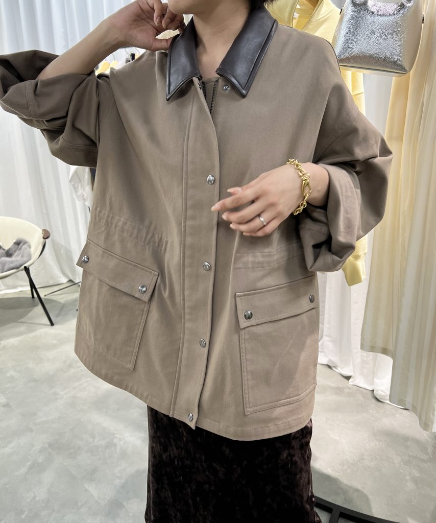 BLOUSON: [สั่งซื้อล่วงหน้า]เสื้อแจ็คเก็ตผ้าฝ้ายทวิลสองสี