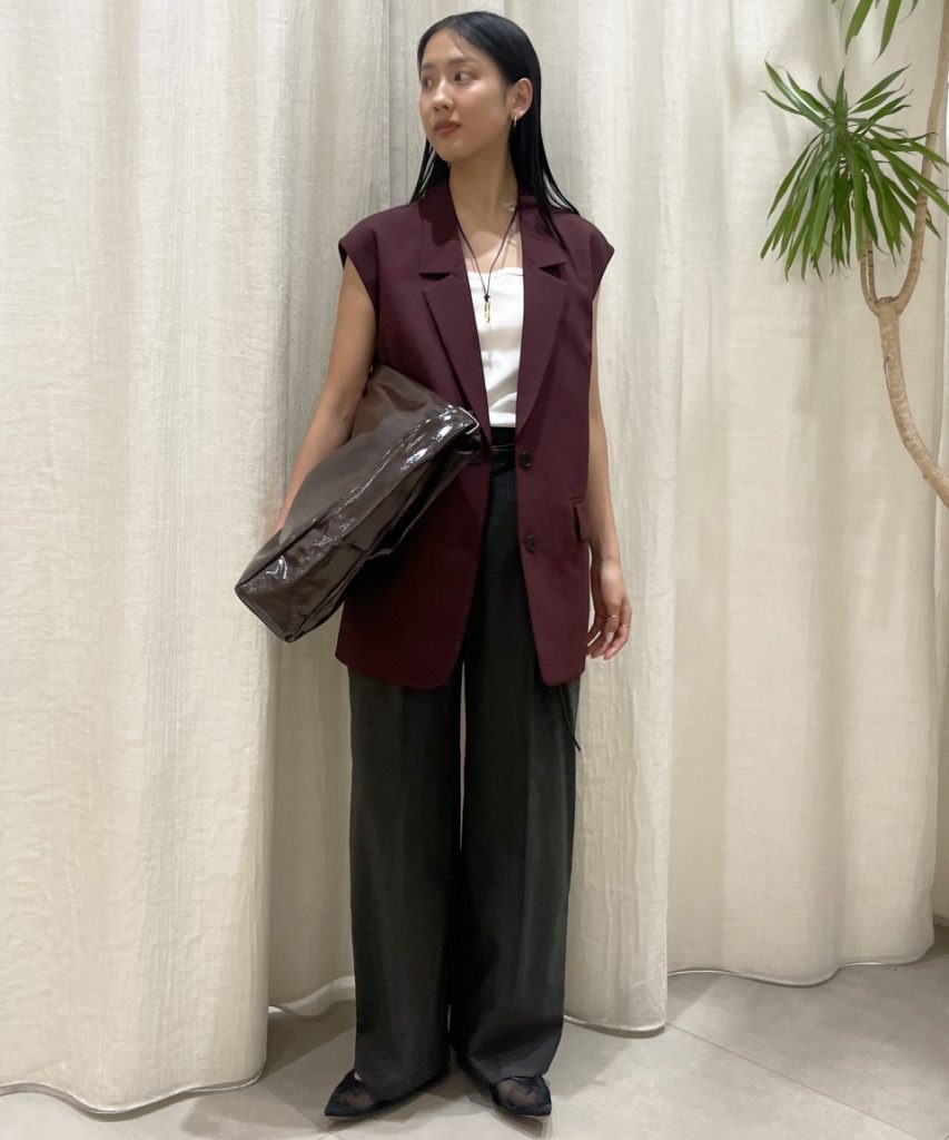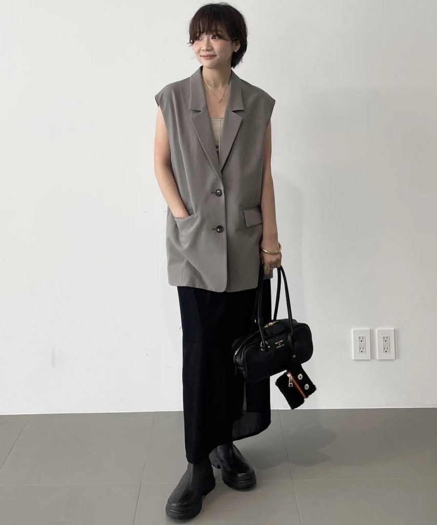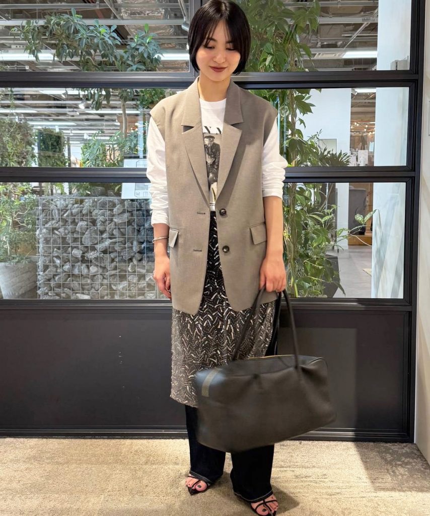 คุณสามารถใส่ไว้ด้านในเสื้อหรือเสื้อเชิ้ตแบบตัดเย็บเองเพื่อความสนุกสนาน หรือใช้เป็นเสื้อกั๊กด้านในในฤดูหนาวก็ได้! ครั้งนี้เราเลือกสไตล์ลำลองโดยจับคู่กับกระโปรงทรงพันรอบตัวประดับอัญมณีและเสื้อตัดเย็บพิมพ์ลาย เนื่องจากเป็นเสื้อกั๊กพื้นฐาน จึงเข้ากันได้ดีกับไอเท็มที่มีสไตล์สนุกสนาน