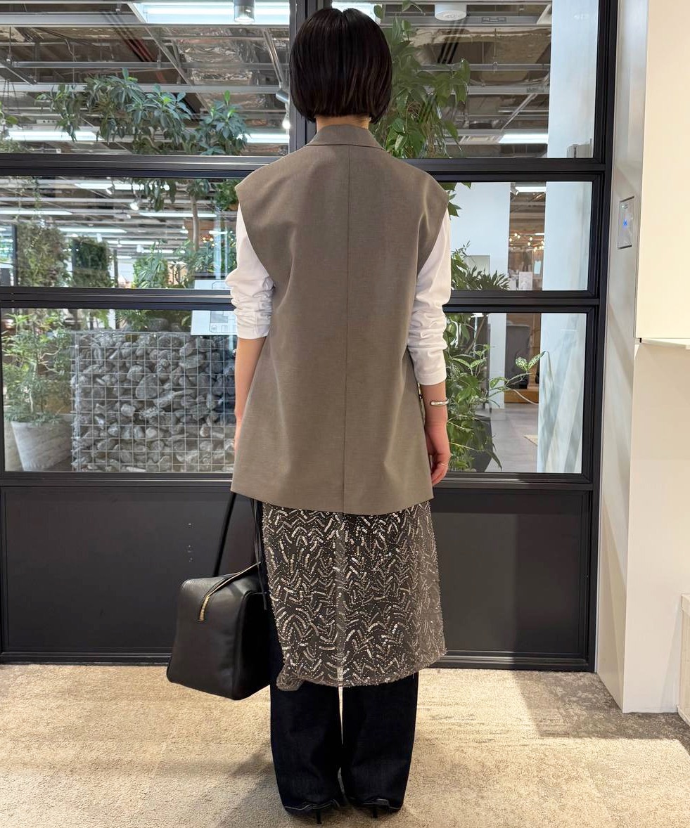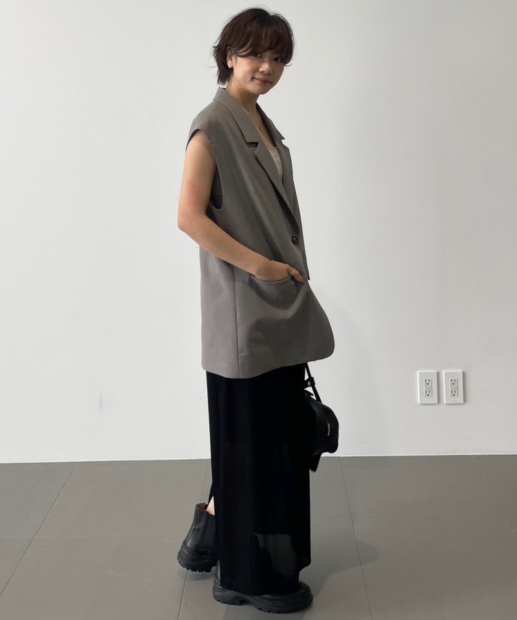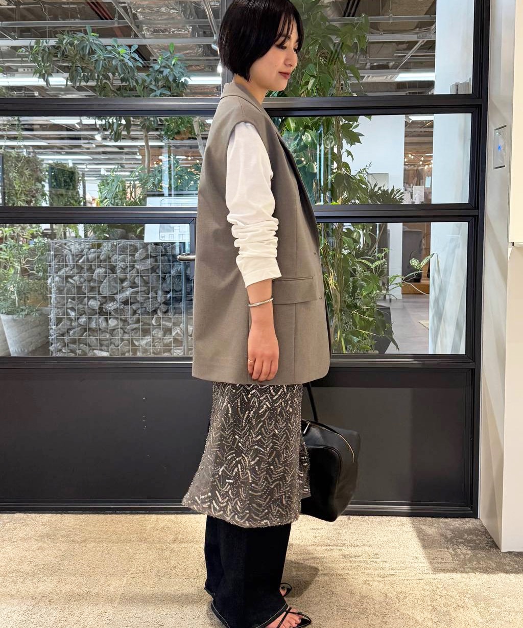 คุณสามารถใส่ไว้ด้านในเสื้อหรือเสื้อเชิ้ตแบบตัดเย็บเองเพื่อความสนุกสนาน หรือใช้เป็นเสื้อกั๊กด้านในในฤดูหนาวก็ได้! ครั้งนี้เราเลือกสไตล์ลำลองโดยจับคู่กับกระโปรงทรงพันรอบตัวประดับอัญมณีและเสื้อตัดเย็บพิมพ์ลาย เนื่องจากเป็นเสื้อกั๊กพื้นฐาน จึงเข้ากันได้ดีกับไอเท็มที่มีสไตล์สนุกสนาน