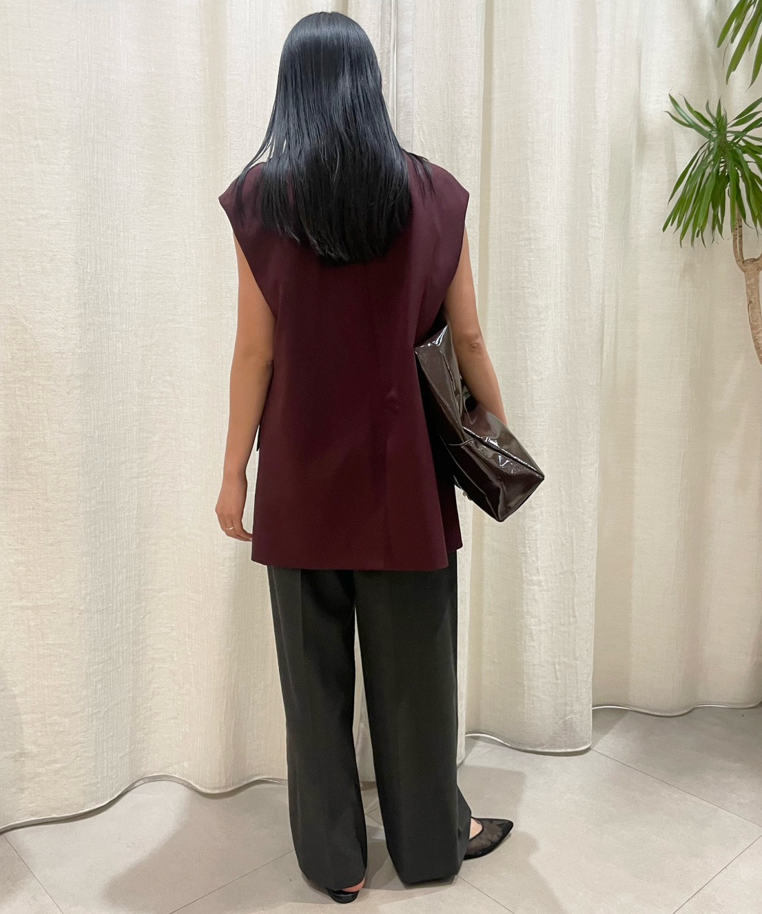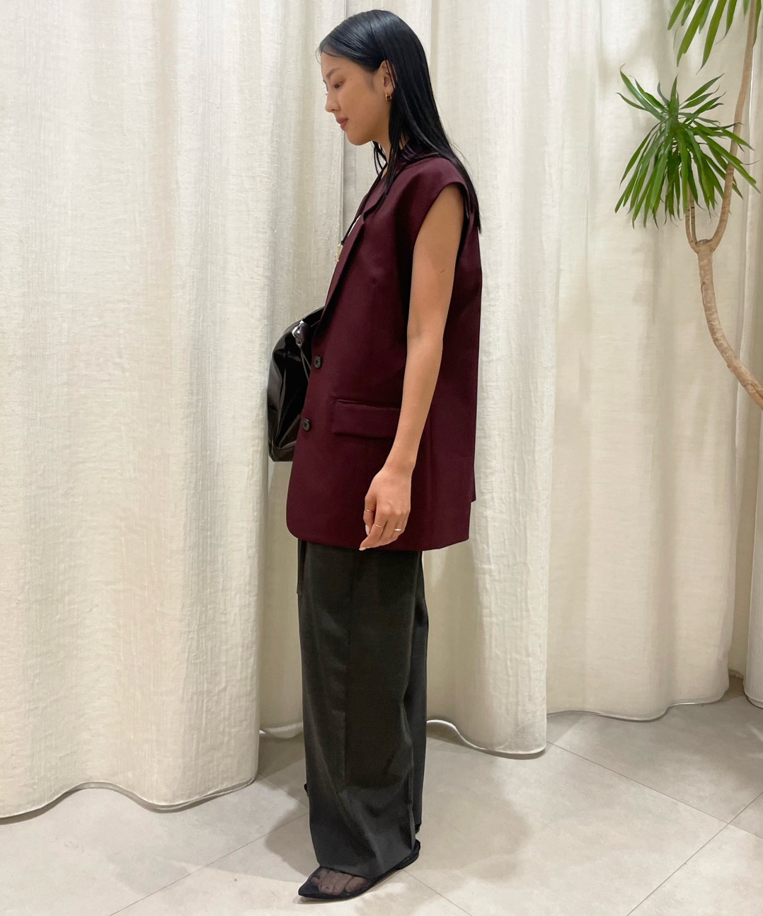 เพียงแค่สวมเสื้อกั๊กสุดหรูนี้ทับเสื้อยืด ก็เปลี่ยนมาใส่สไตล์ฤดูใบไม้ร่วงได้ทันที ดีไซน์คอเสื้อเว้าลงเล็กน้อยและทรงหลวมสบายเป็นจุดเด่นสำคัญ ผลิตจากวัสดุโพลีเอสเตอร์ที่ให้สัมผัสคล้ายผ้าขนสัตว์ จึงไม่ยับง่ายและสวมใส่สบายทุกวัน