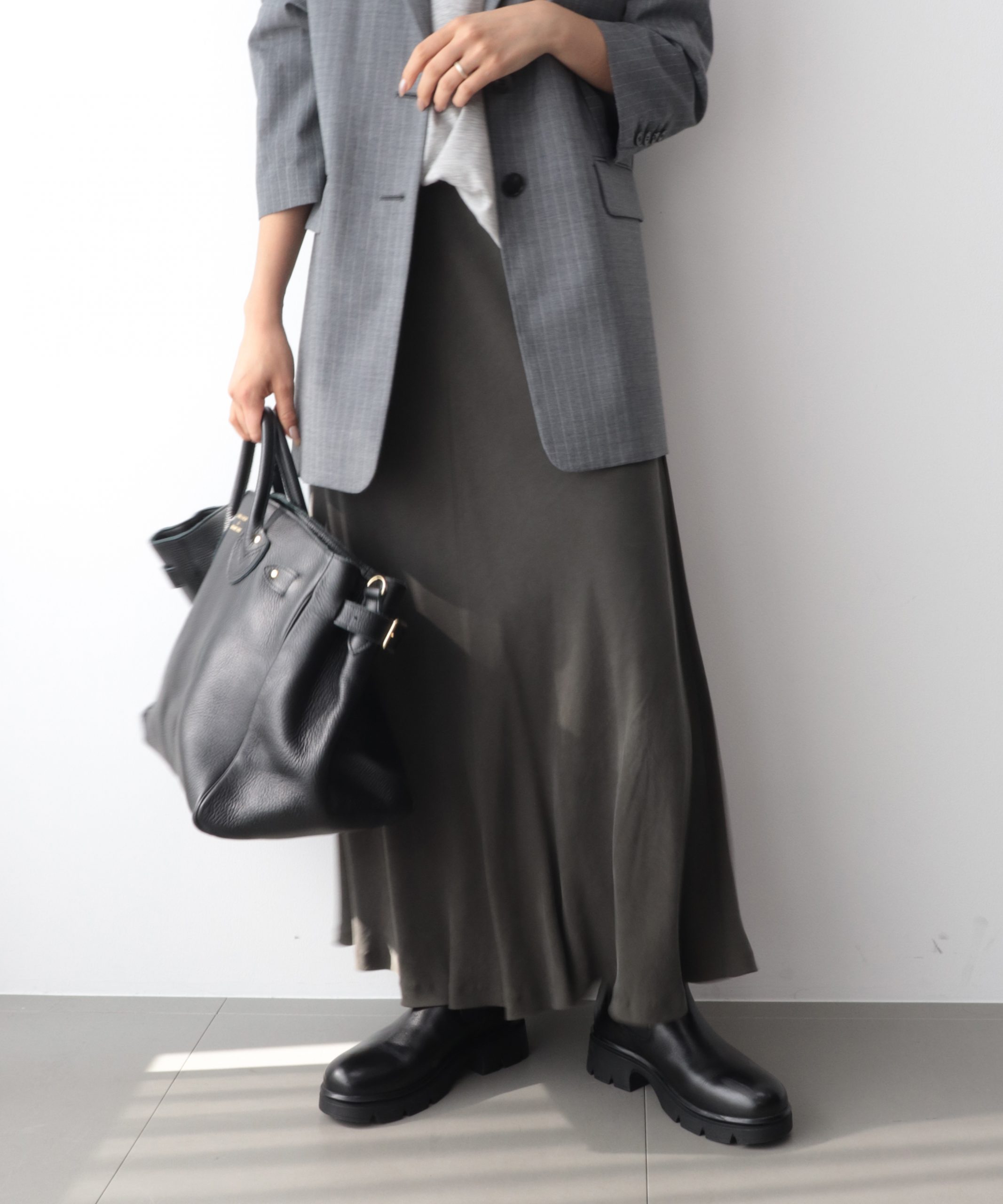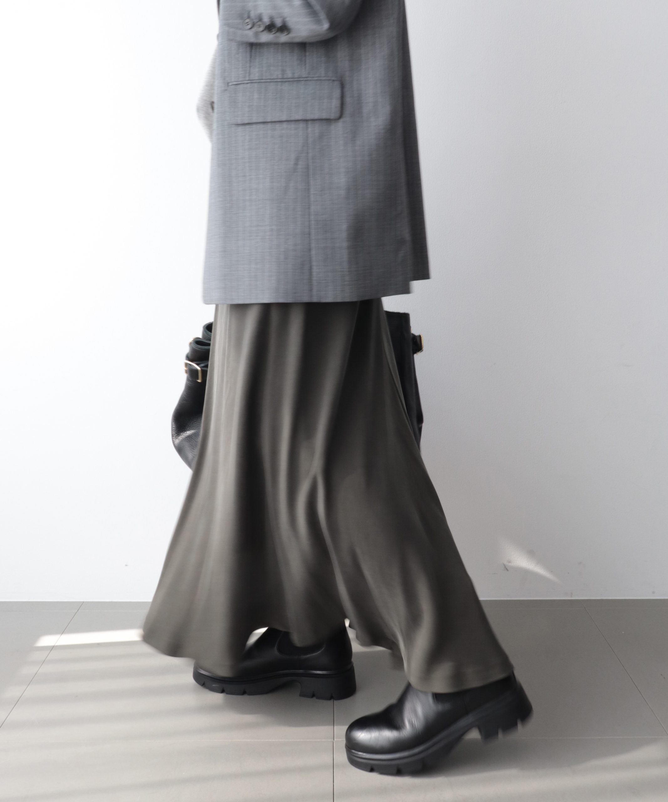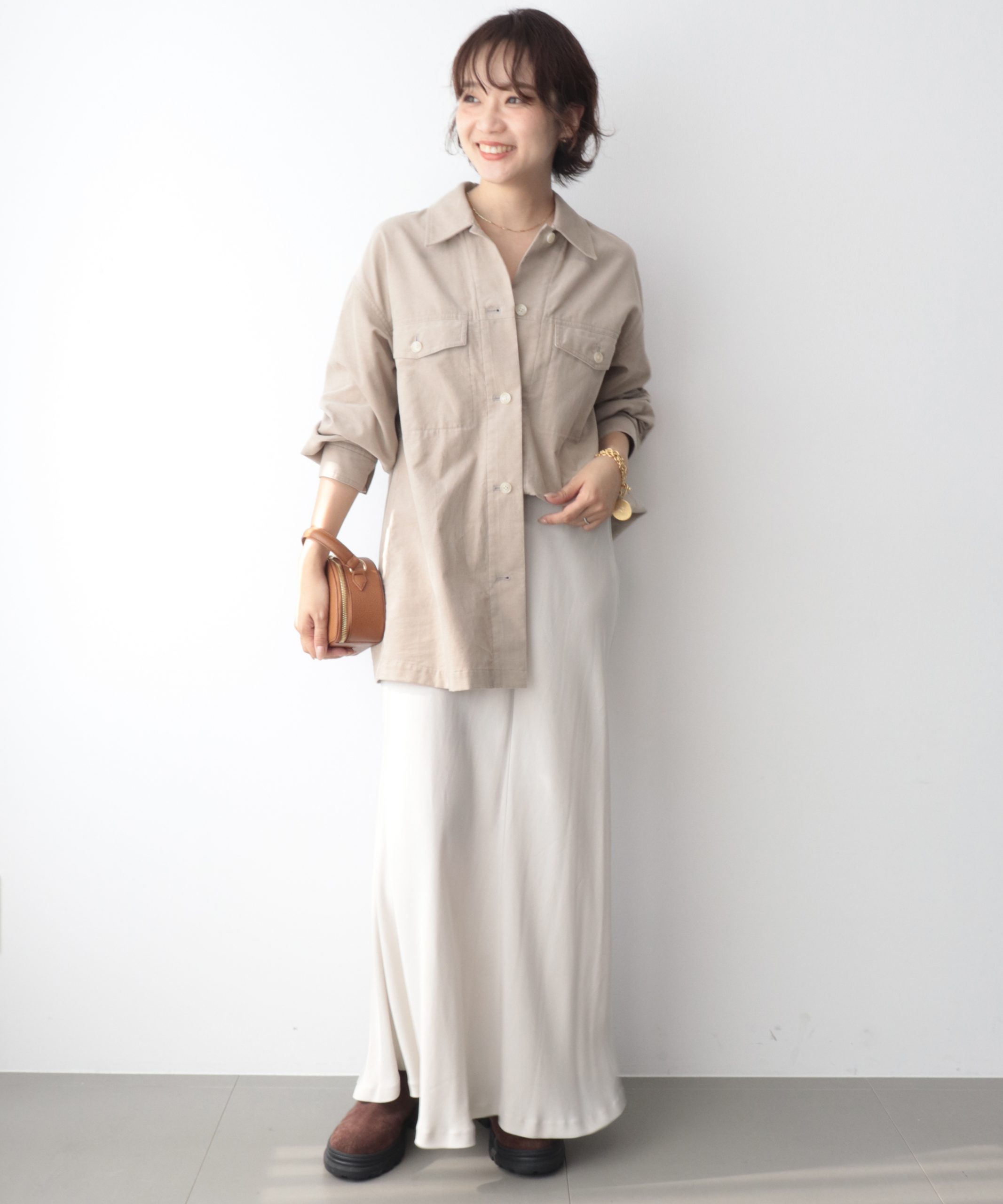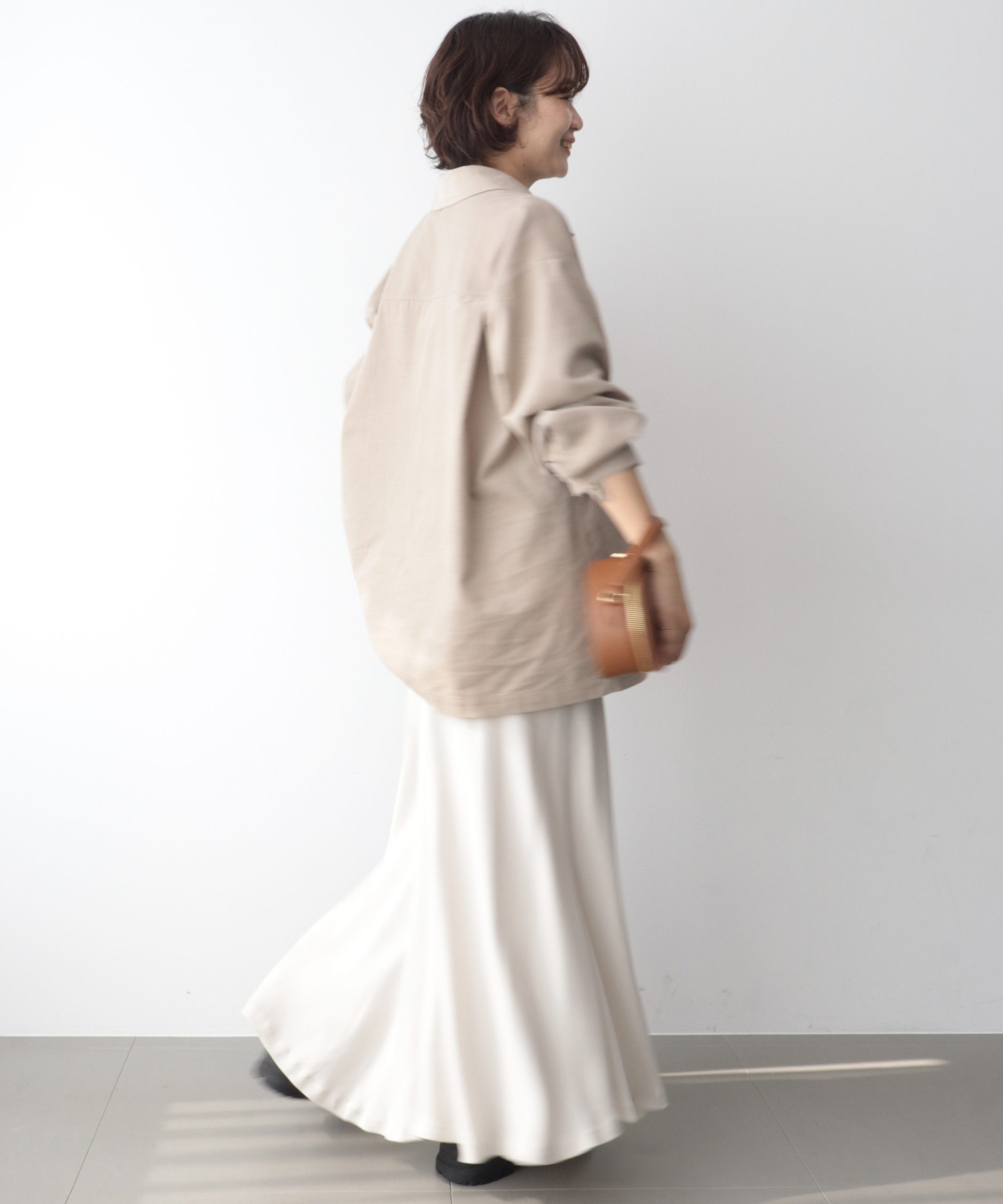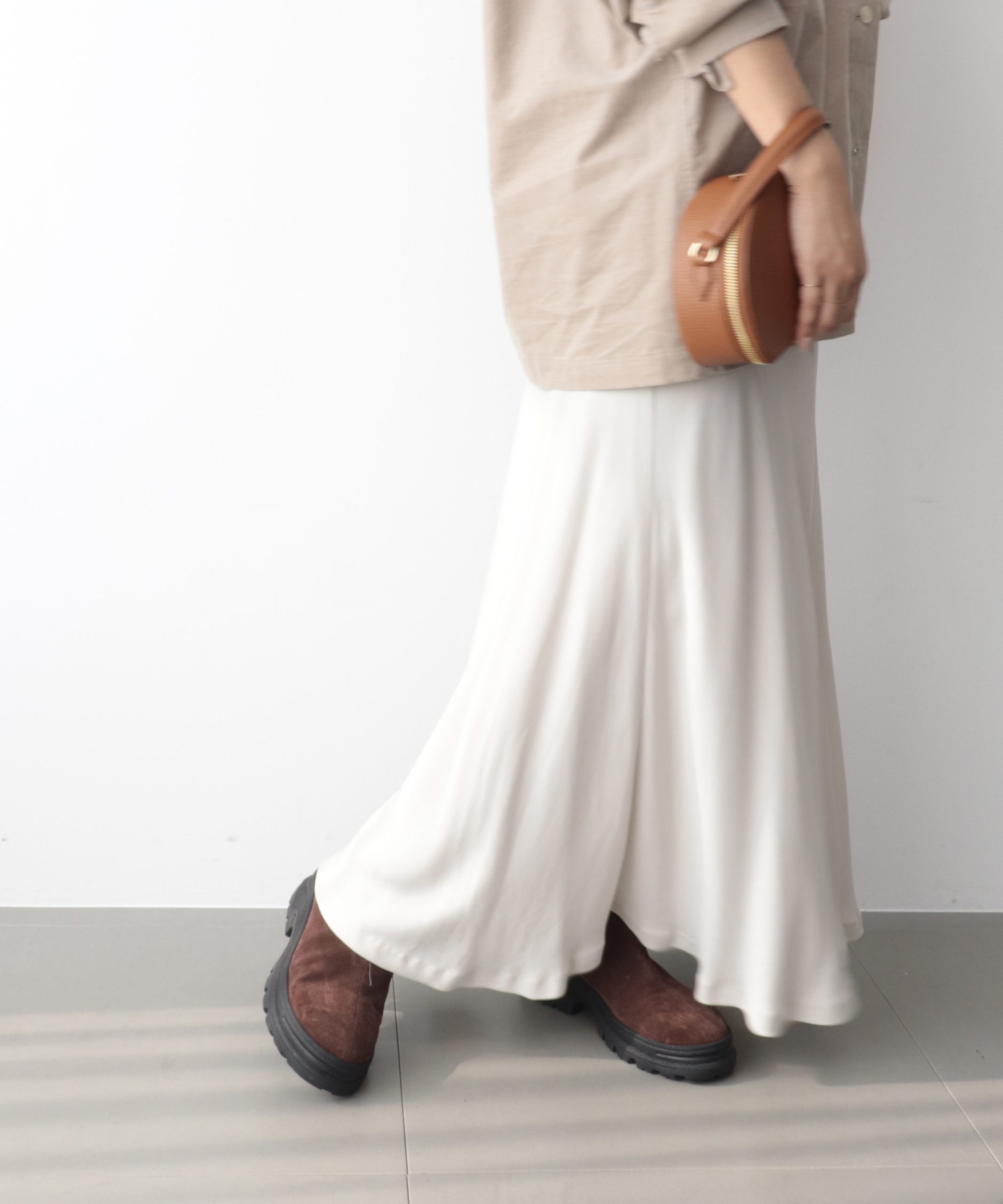 ไอเท็มเรียบง่ายแต่ทันสมัยชิ้นนี้ ผสานเทรนด์ผ้าหนังกลับที่กำลังมาแรง เข้ากับกระโปรงทรงบาน