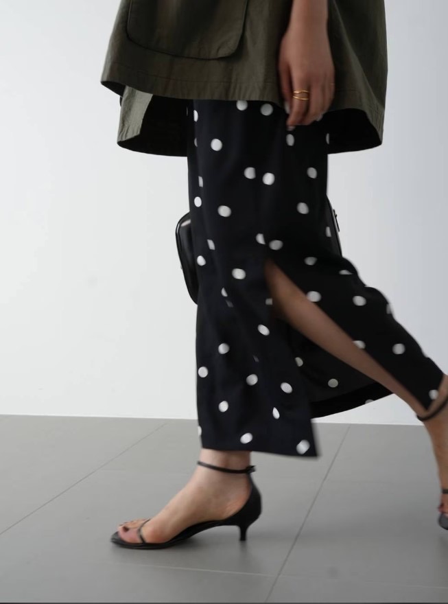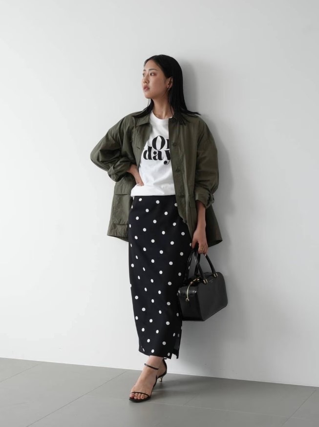 กระโปรงตัวนี้โดดเด่นด้วยลายจุดขนาดใหญ่สะดุดตา! ทรงเอไลน์ตรงๆ ทำให้เข้ากันได้ดีกับเสื้อทุกแบบ ♡ เราขอแนะนำให้จับคู่กับเสื้อยืดและแจ็คเก็ตสไตล์ทหารเพื่อลุคที่ดูเป็นผู้ใหญ่แต่ก็สบายๆ ✨