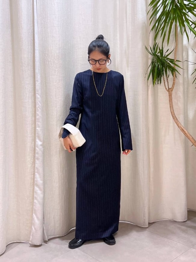 <สีกรมท่าเข้ม 98> เดรสตัวนี้จะทำให้คุณดูเป็นผู้เชี่ยวชาญด้านแฟชั่นที่ดูดีมีระดับเพียงแค่สวมใส่ ทรงเอไลน์และผ้าลายทางแบบแมนนิชอร์ทำให้เดรสตัวนี้ดูหรูหราแต่ก็แฝงความขี้เล่น จับคู่กับรองเท้าส้นสูงเพื่อลุคที่ดูโดดเด่น หรือรองเท้าผ้าใบเพื่อลุคที่ดูสบายๆ ทำให้เดรสตัวนี้สามารถใส่ได้หลากหลายโอกาส แผ่นรองไหล่สามารถถอดออกได้ คุณจึงสามารถใส่หรือถอดออกเพื่อให้เหมาะกับรูปร่างและความชอบของคุณได้