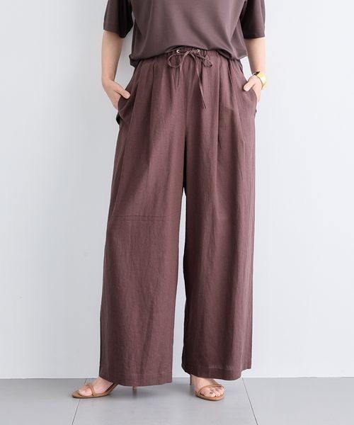 กางเกงขายาวผ้าลินินทรงกว้าง ซักมือได้
