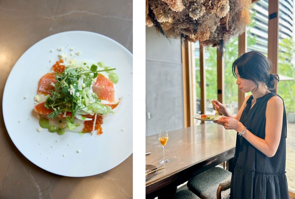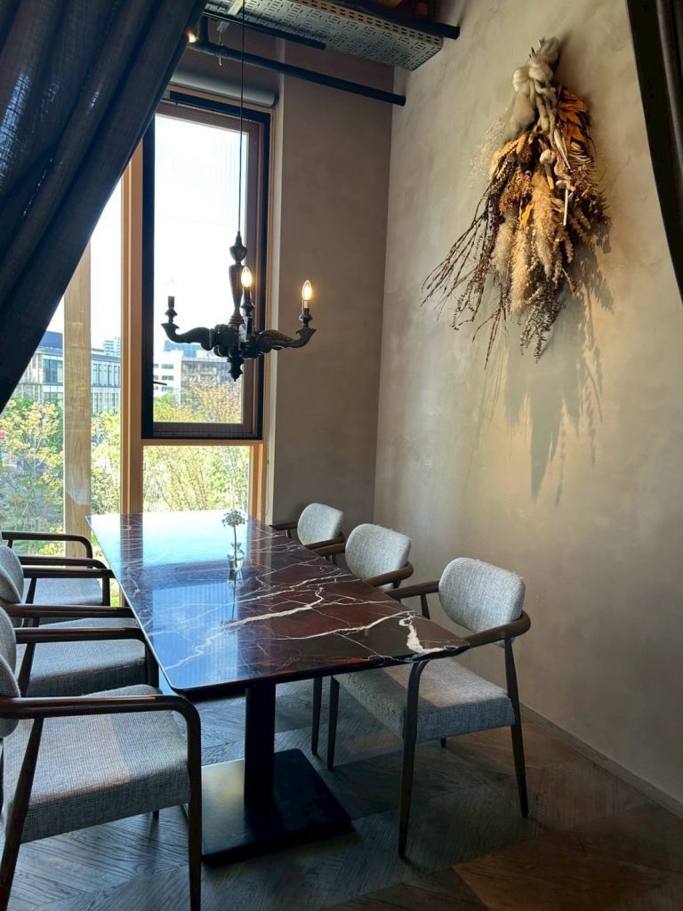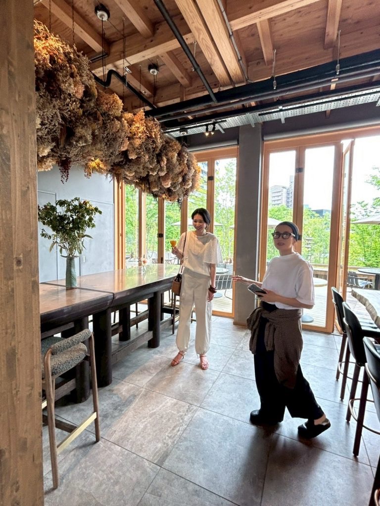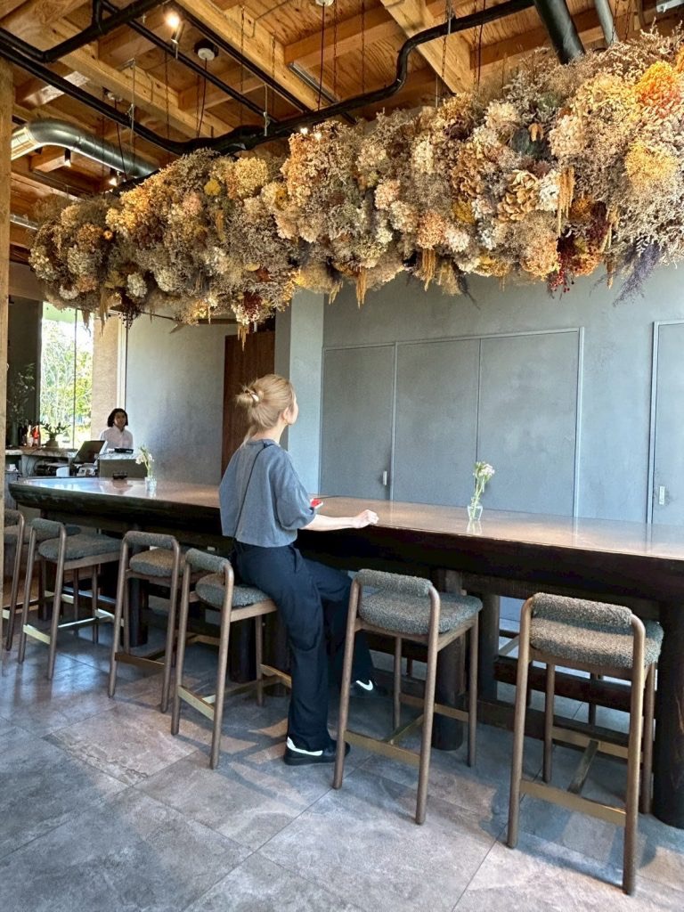 ดอกไม้แห้งที่ห้อยลงมาจากเพดานอย่างมีชีวิตชีวา ของตกแต่งภายในที่ดูดีมีรสนิยมจัดวางอย่างเป็นธรรมชาติภายในร้าน ขวดไวน์ธรรมชาติที่วางอย่างมีศิลปะบนบันไดที่นำไปสู่ชั้นสอง... โดยส่วนตัวแล้วฉันชอบการตกแต่งภายในของ natuRe TOKYO มาก นอกจากนี้ยังมีที่นั่งบนระเบียงที่ล้อมรอบด้วยต้นไม้เขียวขจีที่ชั้นหนึ่ง ซึ่งให้ความรู้สึกโล่งโปร่งสบายจนลืมไปเลยว่ากำลังอยู่ในเมือง อาหารอร่อยมากแน่นอน แต่พื้นที่ก็ยอดเยี่ยมเช่นกัน ดังนั้นอย่าลืมไปชมการตกแต่งภายในเมื่อคุณไปที่นั่น