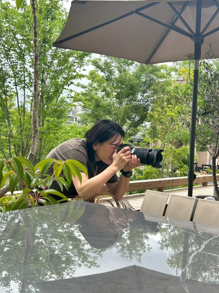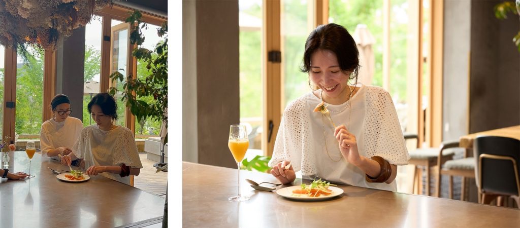พวกเราได้พักผ่อนสบายๆ จิบชาสมุนไพรบนระเบียง ตอนนั้นเธอเริ่มคุ้นเคยกับบรรยากาศการถ่ายทำแล้วและดูผ่อนคลายดี