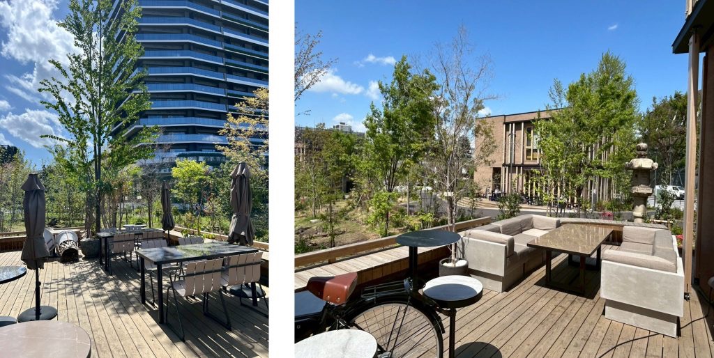 ร้านตั้งอยู่ในทำเลที่ล้อมรอบไปด้วยต้นไม้เขียวขจี ทำให้ยากที่จะเชื่อว่ามันอยู่ใจกลางกรุงโตเกียว