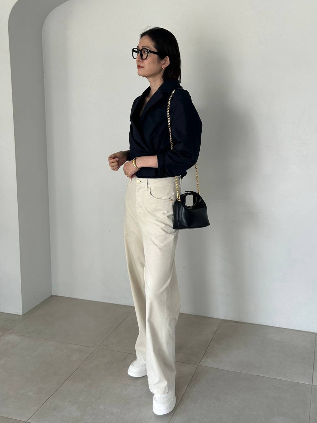 สีขาวเข้ากันได้ดีกับความแข็งของเนื้อผ้าแจ็กเก็ต