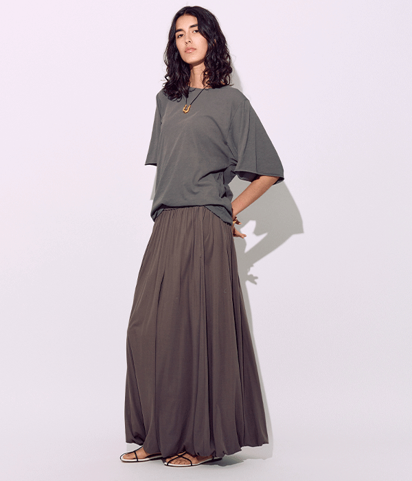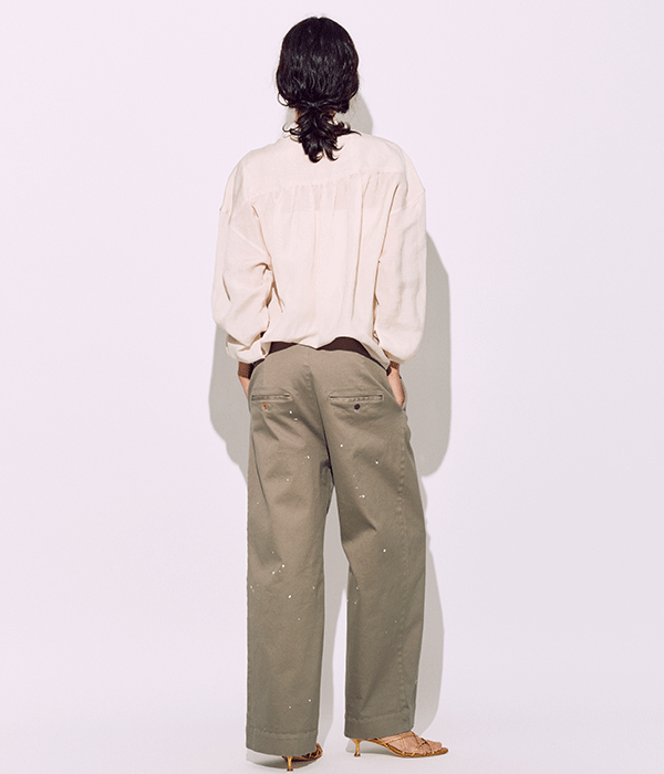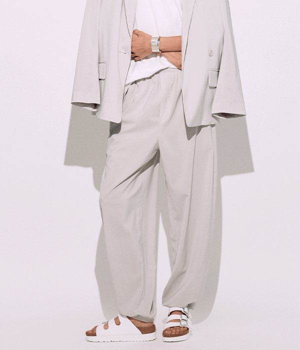 การเย็บจับจีบอย่างมีวอลลุ่มและเนื้อผ้าที่หลวมทำให้ได้รูปทรงที่ดูเรียบหรู ขอบเอวเป็นยางยืดเพื่อความกระชับพอดี พื้นผิวเรียบลื่นให้ความรู้สึกสบายผิว เนื้อผ้าโปร่งเบาและลดการเกิดขุยส่วนเกิน ทำให้สวมใส่สบายยิ่งกว่าที่เห็น