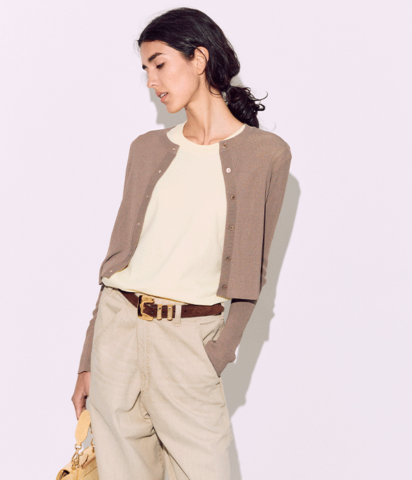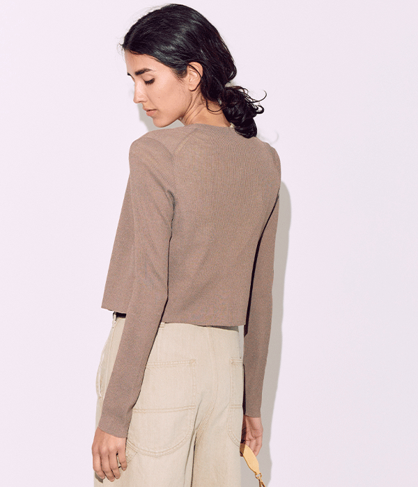 ■เสื้อคาร์ดิแกนผ้าไหมถักลายริบสั้น