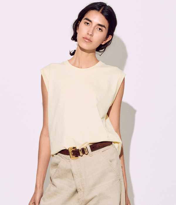 เสื้อยืดแขนกุดตัวนี้มีทรงหลวมใส่สบายและทำจากผ้าฝ้าย สามารถใส่คู่กับกางเกงหรือกระโปรงได้หลายแบบ รับรองว่าคุณจะต้องอยากได้หลายสีเลย