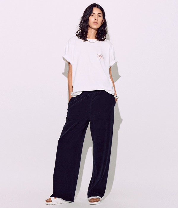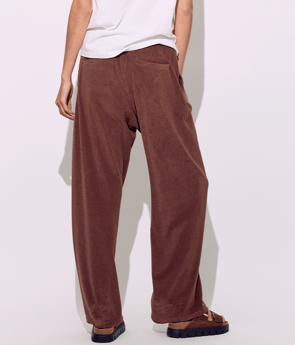 กางเกงทรงหลวมตัวนี้ทำจากวัสดุเนื้อนุ่มสบาย แม้จะมีรูปลักษณ์ที่ดูสบายๆ แต่ความสมดุลระหว่างทรงและวัสดุทำให้ดูหรูหราเล็กน้อย เป็นไอเท็มที่ต้องมีติดตู้เสื้อผ้าของผู้ใหญ่ทุกคน!