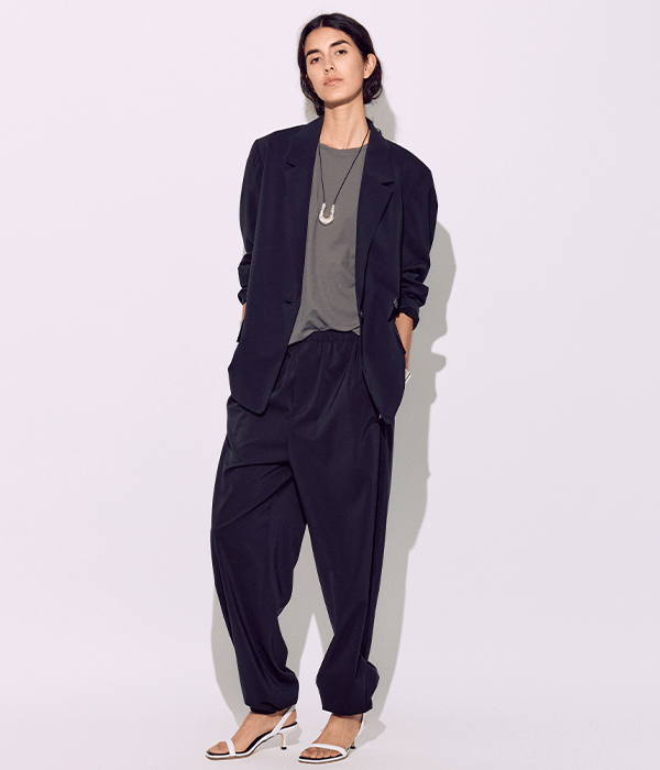 แจ็คเก็ตทรงเข้ารูปใหม่นี้เรียบง่ายแต่ทันสมัย เนื้อผ้าเมลังจ์ให้มิติที่ดูหรูหราและมีระดับ เป็นชิ้นที่ทั้งเท่และนุ่มสบาย ด้วยทรงที่ใหญ่กว่าตัวเล็กน้อยและกระดุมสองเม็ด จึงเหมาะสำหรับใส่เดี่ยวๆ!กางเกงขายาวผูกเชือกชายกางเกงนอกจากนี้ยังสามารถสวมใส่เป็นชุดเดียวกับไอเท็มอื่นๆ ได้อีกด้วย
