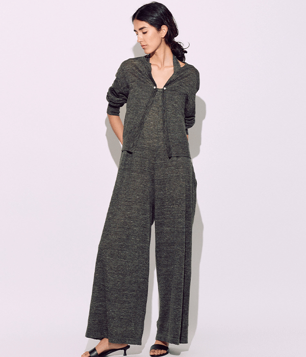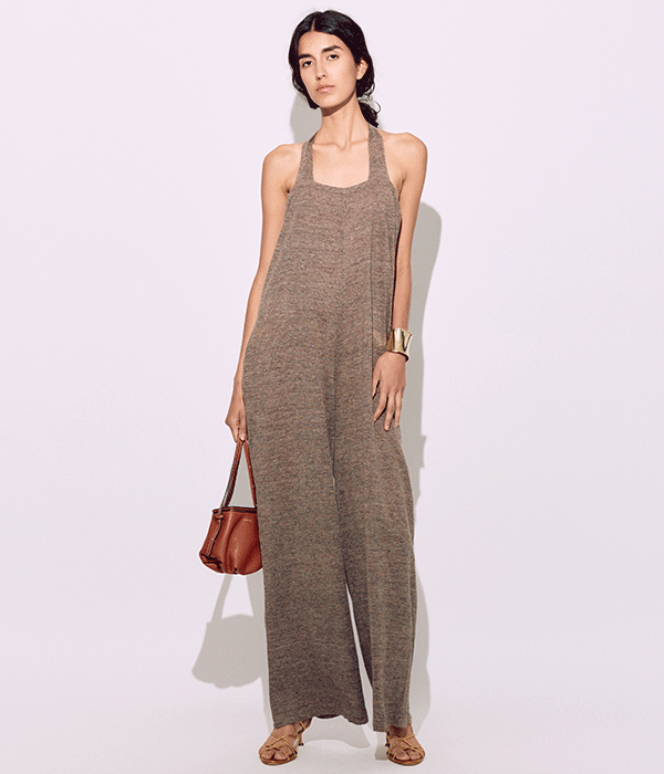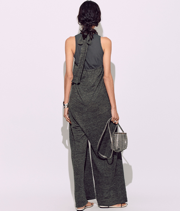 ดีไซน์ด้านหลังที่เปิดกว้างและริบบิ้นที่ผูกไว้ด้านหลังคอดูโดดเด่นสะดุดตา เนื้อผ้าผสมลินินเย็นสบายผิว ด้านหน้าเรียบง่าย แต่ด้านหลังดูอลังการ ชุดจั๊มสูทตัวนี้มีความเซ็กซี่แบบลำลองแต่ก็ดูเป็นผู้ใหญ่ สามารถใส่ทับด้วยเสื้อยืดหรือเสื้อกล้ามได้ นอกจากนี้เสื้อคาร์ดิแกนยาปอนโชนอกจากนี้ เราขอแนะนำให้ตั้งค่าโดยใช้: