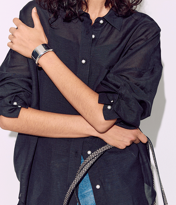 シルク混ความเงางามและความสมดุลที่ลงตัวของชิ้นนี้คือเสน่ห์ของมัน ดูดีไม่ว่าจะใส่แบบลำลองหรือติดกระดุมแล้วใส่เป็นเสื้อตัวบนรถถังอเมริกันซูริแนะนำให้สวมใส่เป็นชุดเดียวกันด้วย
