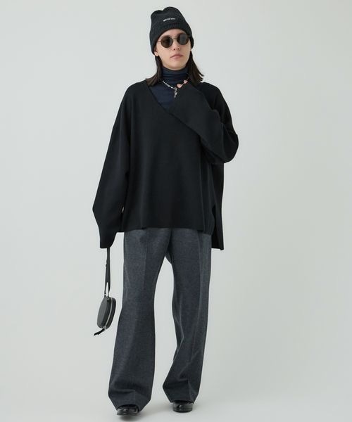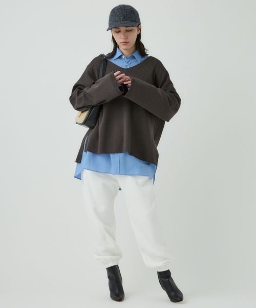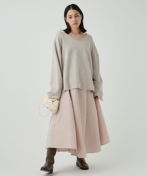 เสื้อถักคอวีทรงหลวมขนาดใหญ่