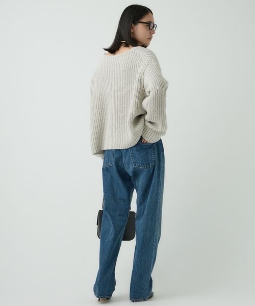 เสื้อถักทรงหลวม ไม่รัดรูปช่วงคอ