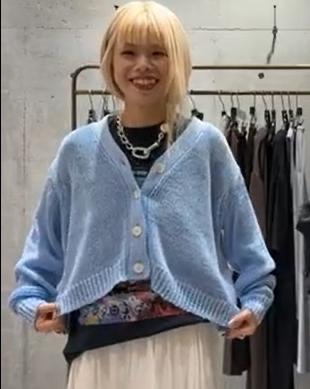 A. เสื้อคาร์ดิแกนถักผ้าฝ้าย Epi ราคา 24,200 เยน (รวมภาษี) สีน้ำเงินเป็นสีใหม่ มีให้เลือก 3 สี ได้แก่ สีเบจ สีเขียวมะกอก และสีน้ำเงิน