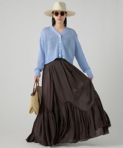 น่ารักในทุกๆ ด้าน! เส้นด้ายยืนเป็นผ้าไหมออร์แกนซ่า และเส้นด้ายพุ่งเป็นผ้าลินินแบบมีปุ่ม ทำให้เกิดลายปุ่มแนวนอนของผ้าออร์แกนซ่า พื้นผิวของเสื้อตัวนี้จึงดูมีเอกลักษณ์เฉพาะตัว