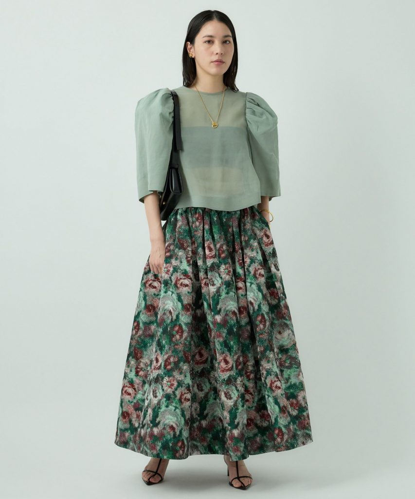 ชายกระโปรงทรงโค้งมนช่วยให้ลุคโดยรวมดูอ่อนโยนยิ่งขึ้น