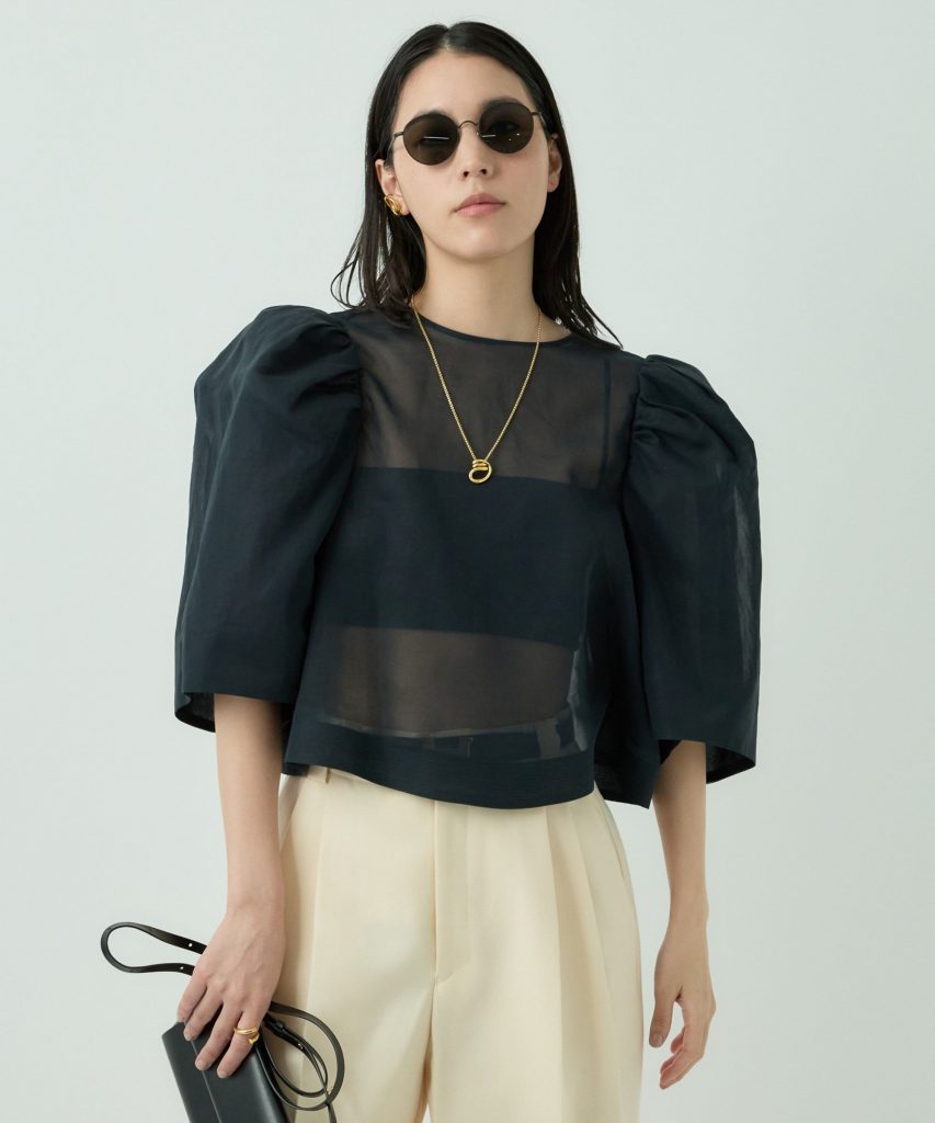 เสื้อเชิ้ตผ้าโปร่งบางเบา ดีไซน์แขนพองฟูคล้ายลูกโป่งกระดาษ