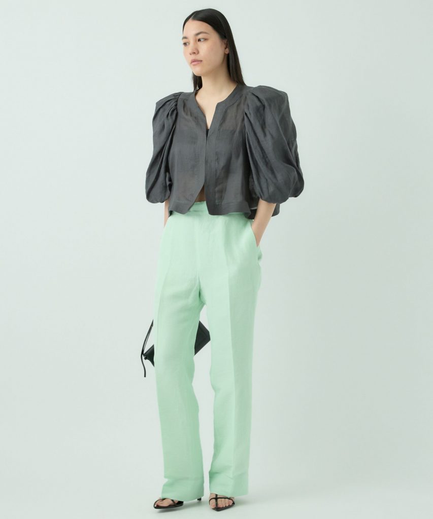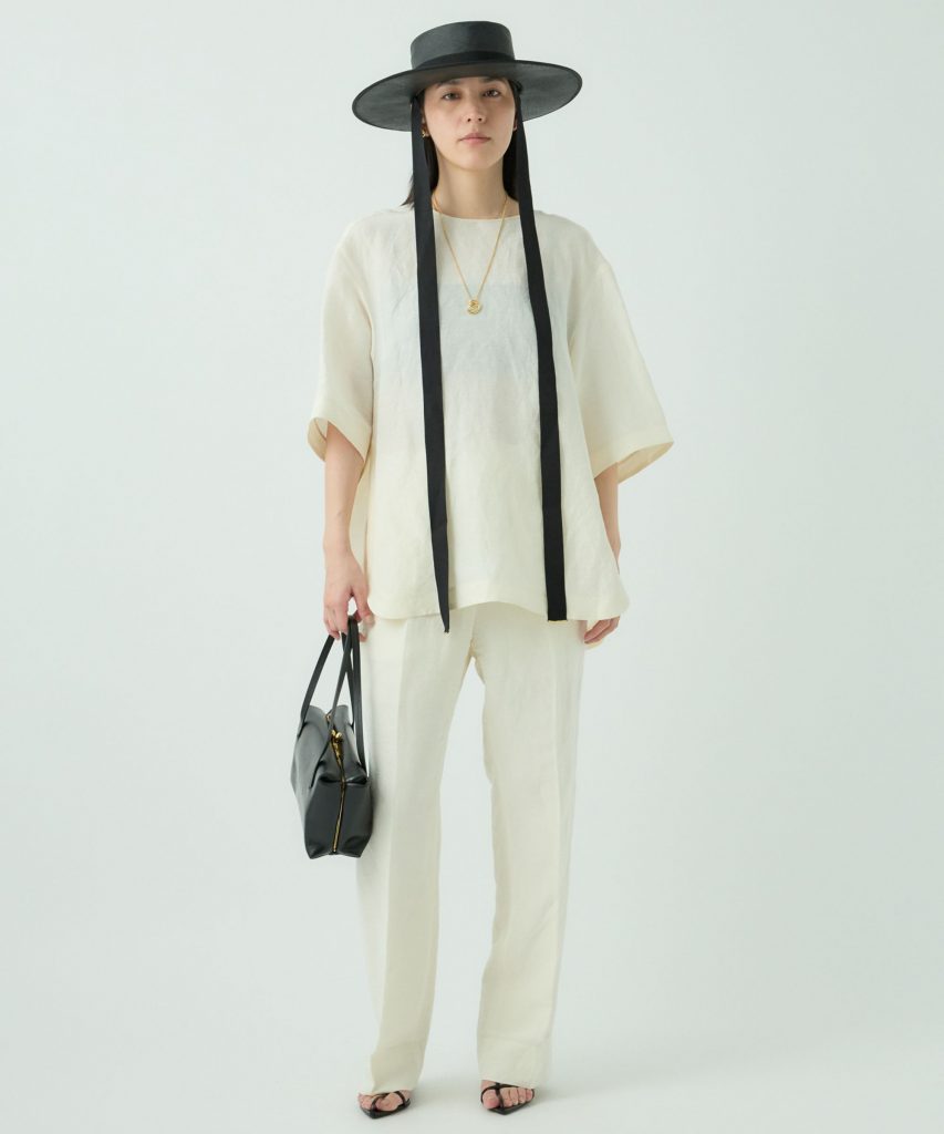 ตัดเย็บจากผ้าลินินผสมไหมคุณภาพสูง ชิ้นงานนี้สวมใส่สบายแต่ยังคงเน้นความสวยงามของรูปทรง