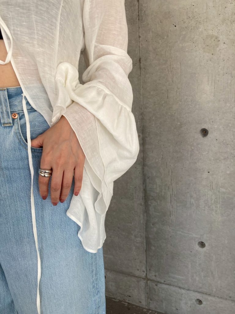เนื้อผ้าโปร่งบางและผสมผ้าฝ้ายลินิน ทำให้เหมาะอย่างยิ่งที่จะสวมเป็นแจ็คเก็ตในฤดูกาลนี้!