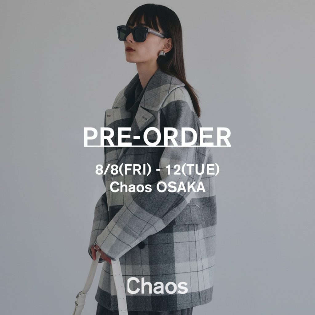 Chaos Osaka จะจัดงานสั่งซื้อสินค้าล่วงหน้าเป็นเวลาห้าวัน ตั้งแต่วันศุกร์ที่ 8 สิงหาคม ถึงวันอังคารที่ 12 สิงหาคม ซึ่งคุณจะได้ชมตัวอย่างเสื้อกันหนาวผ้าขนสัตว์ที่จะวางจำหน่ายในเดือนกันยายนและพฤศจิกายนก่อนใคร