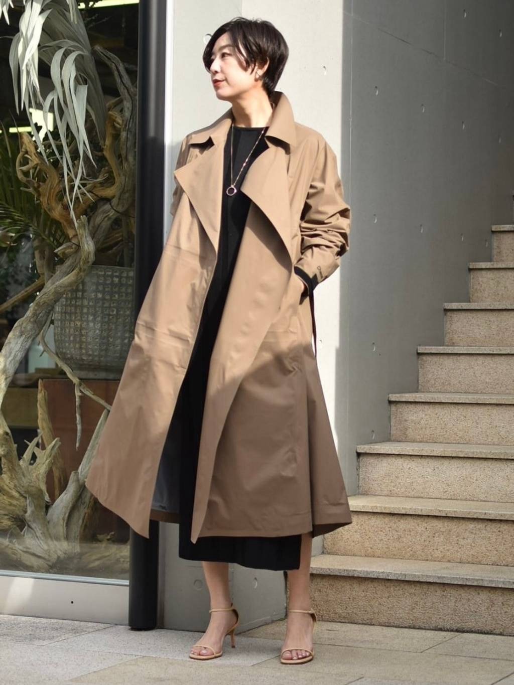 ทรงชุดยาวที่ดูมีโครงสร้างและพลิ้วไหวเป็นเสื้อโค้ทยาวแต่เบาและอบอุ่นค่ะ