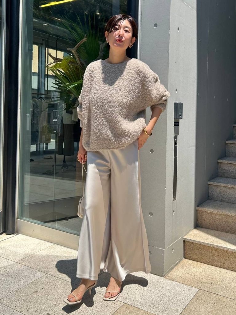 กางเกงขายาวทรงกว้างสวยงาม มีความเงางามและเข้ารูปดีเยี่ยม