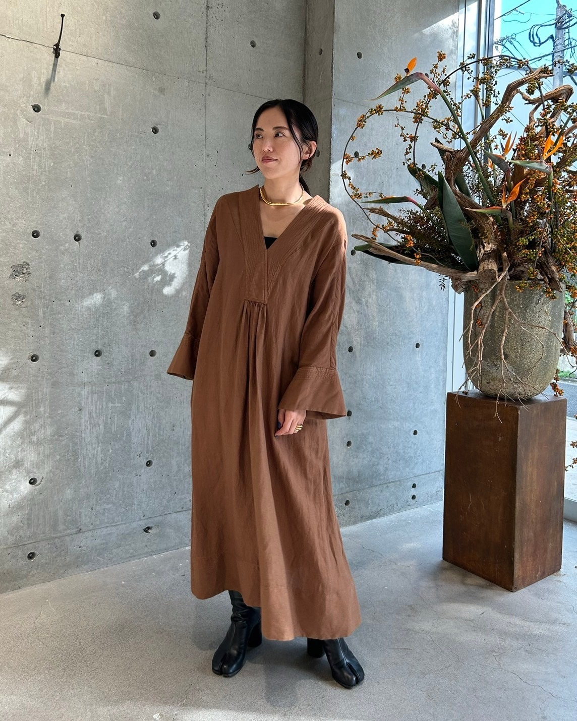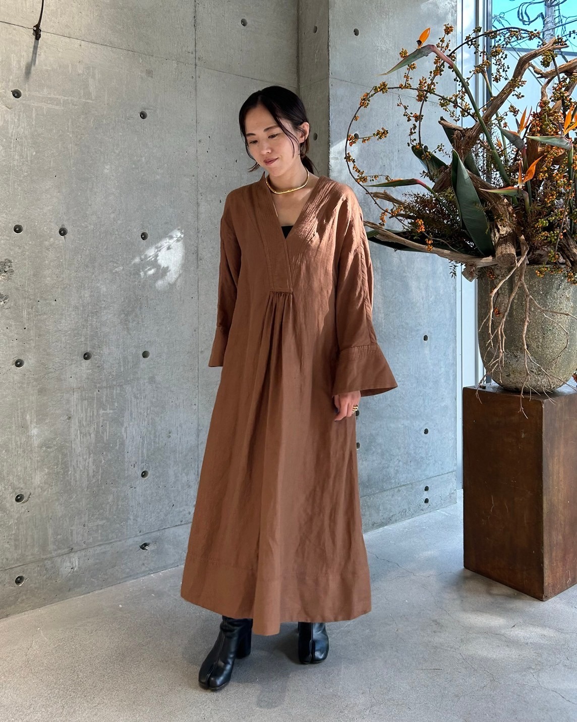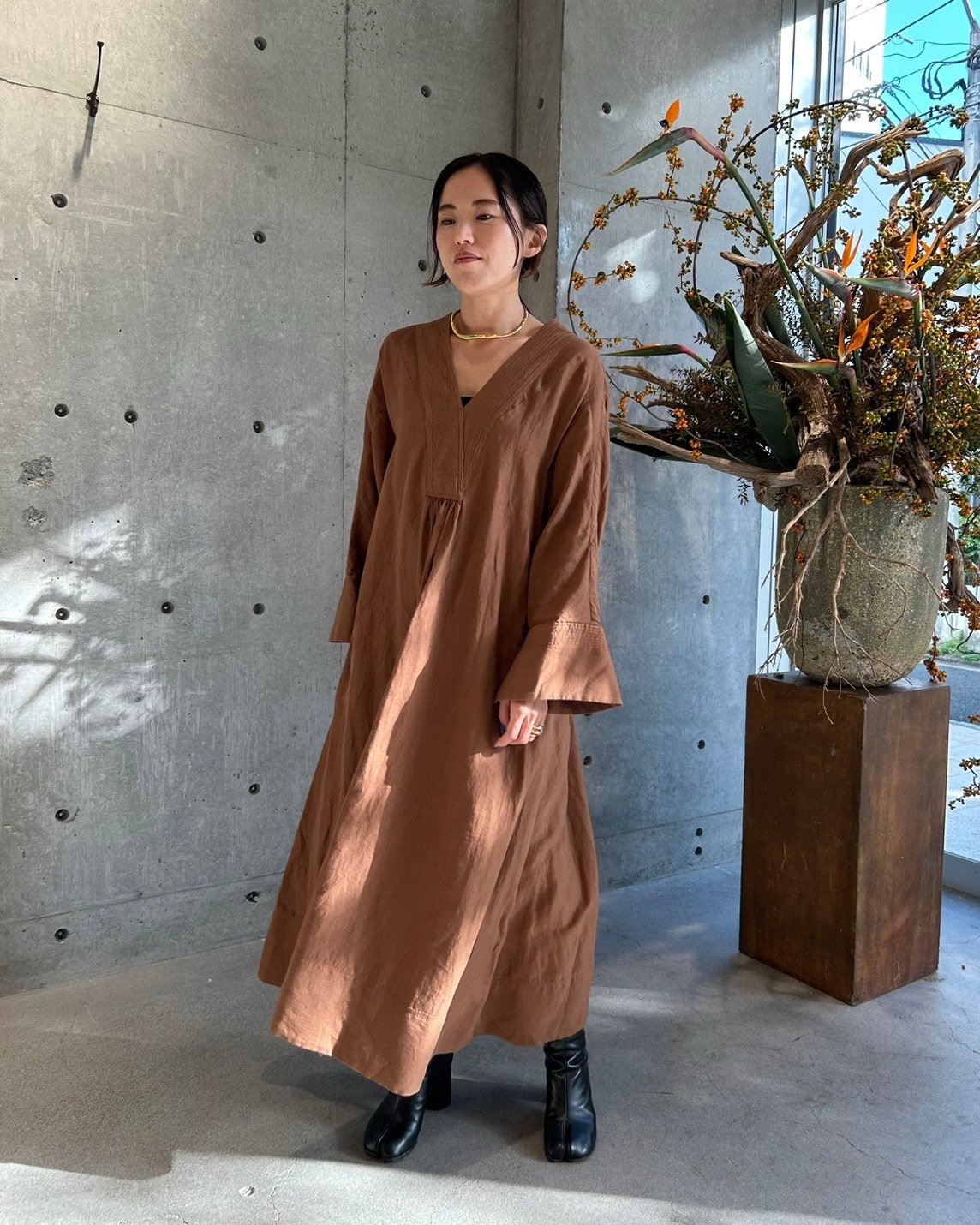 ชุดเดรสคาฟก้าผ้าลินินผสมขนอัลปากา
