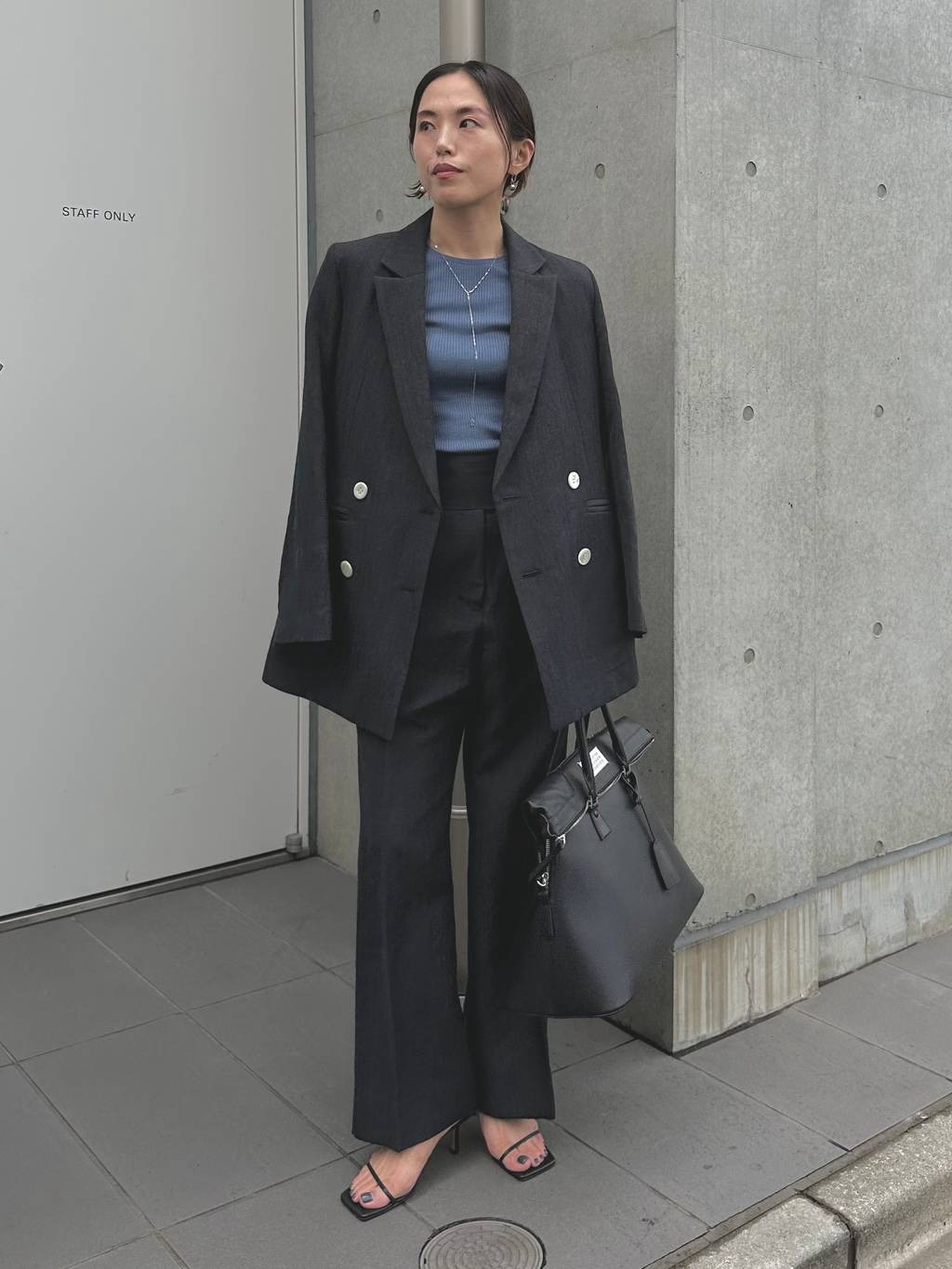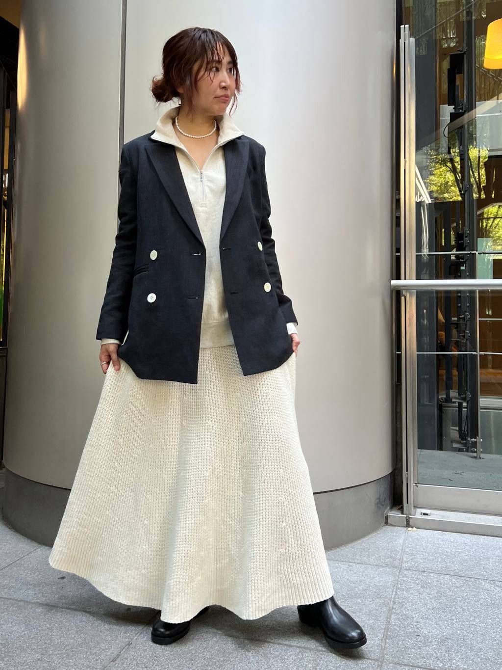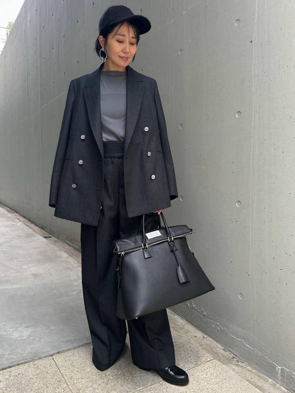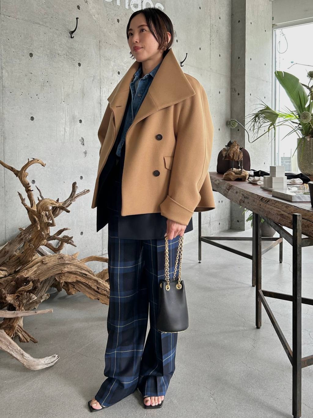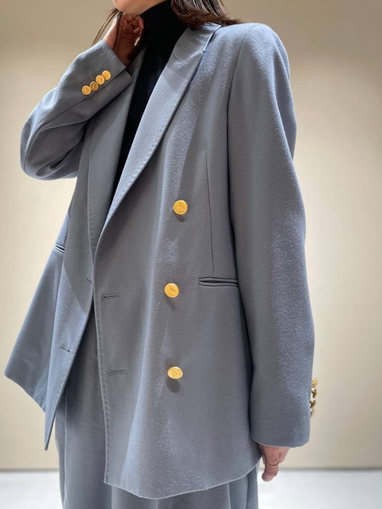 เสื้อแจ็กเก็ตผ้าขนสัตว์ลายก้างปลาแบบกระดุมสองแถว