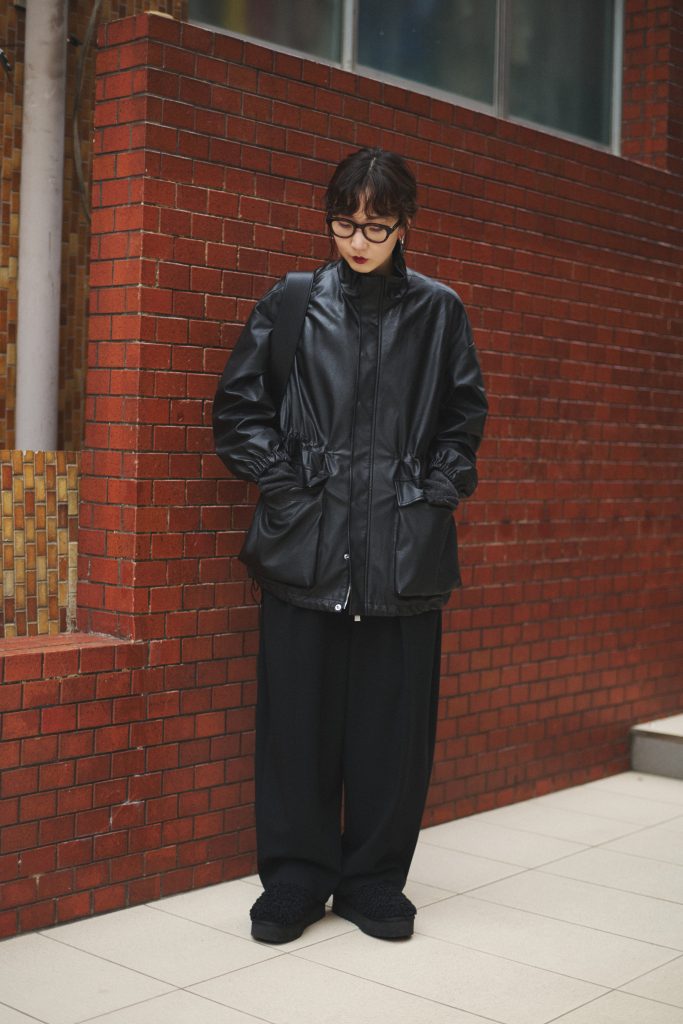 สไตล์โมโนโทน โดยมีแจ็คเก็ตหนังสุดเท่เป็นจุดเด่น เหมาะอย่างยิ่งกับสไตล์แฟชั่นของเคียวโกะ พื้นผิวมันวาวของหนังตัดกับเสื้อถักเนื้อแมตต์และเสื้อยืดสีขาวที่สวมทับอยู่ด้านใน สีขาวที่โผล่พ้นออกมาจากคอเสื้อเล็กน้อย ให้ความรู้สึกอิสระและเบาบางอย่างลงตัวท่ามกลางโทนสีเข้มหนักๆ สร้างสไตล์ลำลองที่ดูเฉียบคมและหรูหราสำหรับผู้ใหญ่