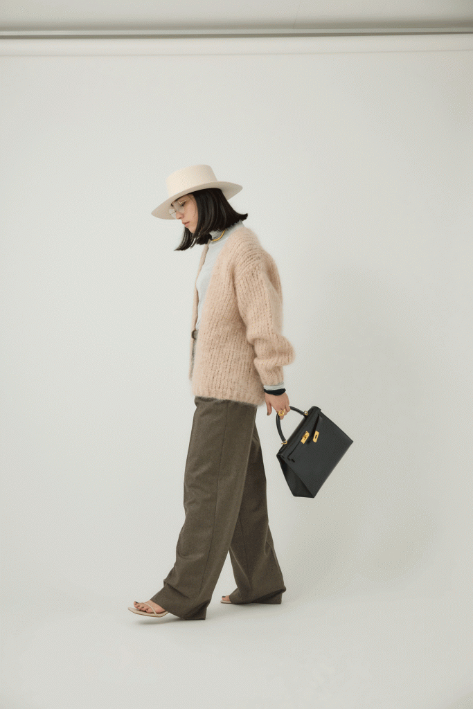Nag-aalok kami ng isang limitadong edisyon ng mohair cardigan na nagtatampok ng temang "CIRCUS" ngayong season, sa stencil art.