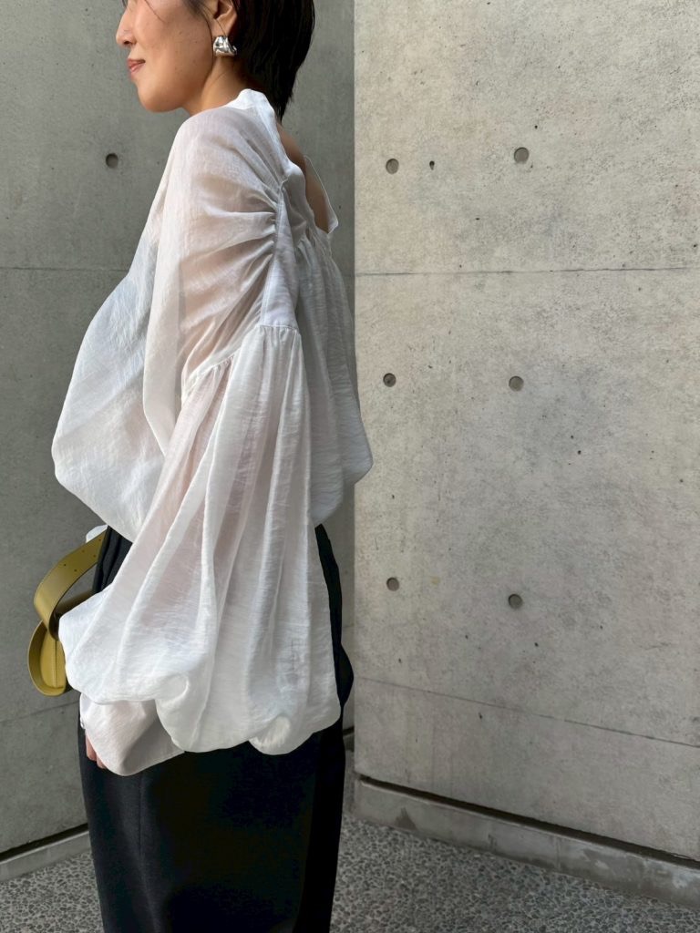 宽松的褶裥和略微喇叭形的袖子营造出浪漫的氛围。